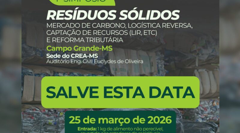 Saiba mais – O 1º Simpósio Resíduos Sólidos será realizado no Auditório Eng. Civil Euclydes de Oliveira, na sede do CREA-MS, na capital, com abertura às 8h. Para participar, os interessados deverão fazer a doação de 1 kg de alimento não perecível, que será integralmente destinado aos catadores de recicláveis. As vagas são limitadas, e as inscrições já estão encerradas. (Por: Secretaria de Comunicação TJMS)