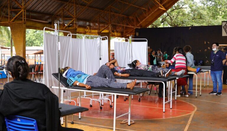 A Escola Municipal Indígena Tengatui Marangatu, localizada na Aldeia Jaguapiru, na Reserva Indígena de Dourados, passou a funcionar como um verdadeiro hospital de campanha no enfrentamento à chikungunya. A estrutura foi montada na quadra da unidade e iniciou os atendimentos nesta terça-feira (17), diante do avanço da doença na Reserva Indígena.