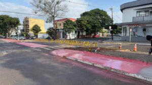 Após a interdição temporária do perímetro, os servidores do Município iniciaram a pintura da faixa de rolamento que demarca a ciclovia. Simultaneamente, após aplicação da base na cor vermelha, os profissionais estarão pintando as faixas tracejadas central amarela (mão dupla), marcações laterais, e as inscrições de regulamentação da ciclo faixa.